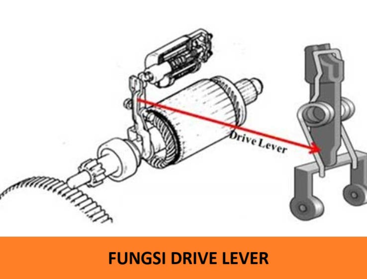 Drive lever berfungsi untuk mendorong pinion gear agar terhubung dengan ring gear pada flywheel. Bentuknya menyerupai garpu kecil dan bekerja sebagai tuas untuk menyalurkan tenaga putar dari motor starter ke mesin. Saat kunci kontak diputar ke posisi start, drive lever akan menggeser pinion gear sehingga terjadi kontak dengan flywheel, memicu perputaran mesin.