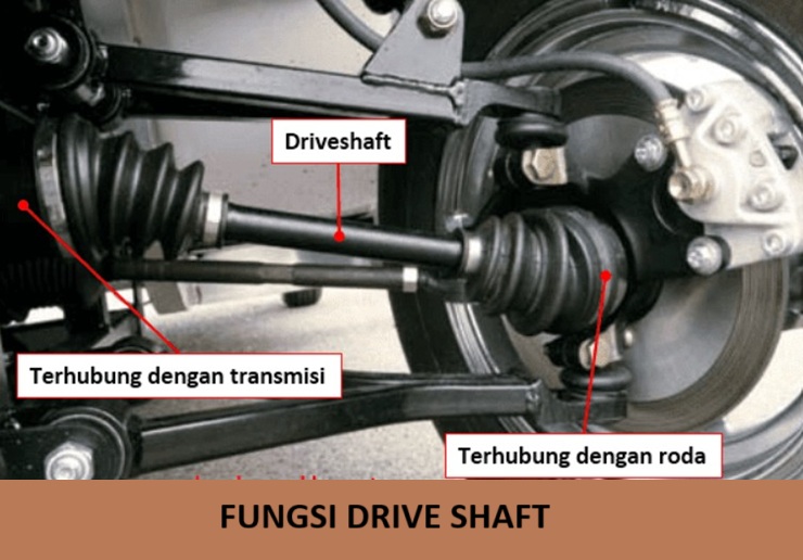 Drive shaft berperan sebagai penghubung transmisi dengan roda. Tenaga putar dari transmisi akan diteruskan menjadi putaran roda agar mobil bisa bergerak. Karena harus menahan beban putar dan hentakan yang kuat, drive shaft dibuat dari baja berkualitas tinggi.