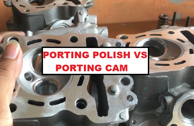 Porting polish lebih berfokus pada perbaikan saluran masuk dan keluar di kepala silinder agar aliran udara dan bahan bakar menjadi lebih lancar, sedangkan porting cam merujuk pada penyesuaian atau penggantian profil camshaft (noken as) untuk mengatur waktu buka-tutup katup sesuai kebutuhan performa.